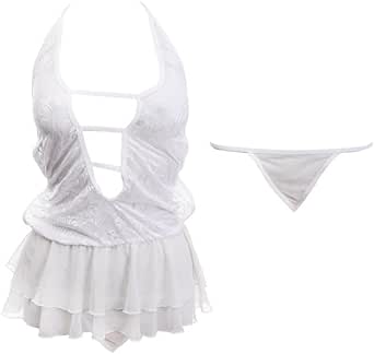 Women Lingerie Short Tulle Lace Sexy Babydoll Side Slits Elegant Choker Neck Soft Elastic Material One Size 60k to 85k