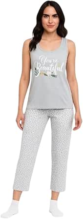 بيجامة نسائية كاجوال قطعتين، قطن ليكرا، مقاس موحد، تصميم لطيف، مناسبة للصيف