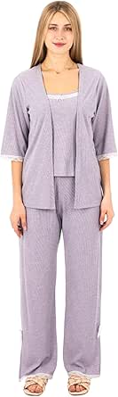 ZECOTEX Women's 3-Piece Ribbed Cotton Pajama Set with Robe | Soft Breathable Summer Loungewear | Sizes M to 2XL