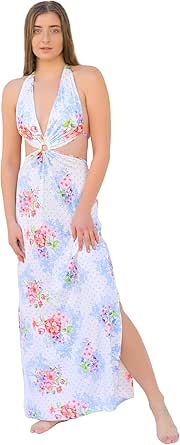 فستان ماكسي حريمي مع قصة مفتوحة من الخصر، بوليستر، بطبعة زهور - قميص نوم طويل مطرزبدون اكمام للنساء/ فستان صيفي وملابس ليلية/ قماش ناعم