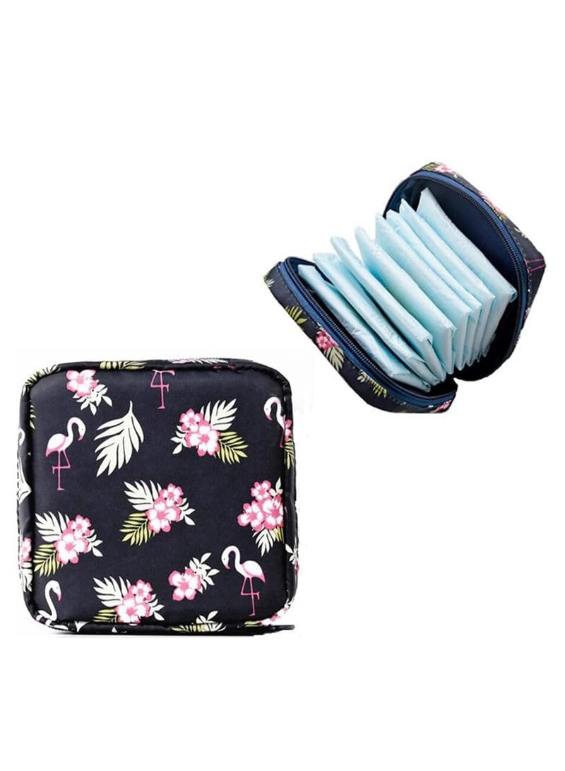 حقيبة تخزين محمولة للفوط الصحية والمكياج، نمط زهور فلامينجو، منظم متعدد الأغراض، بلاستيك، 50 جرام