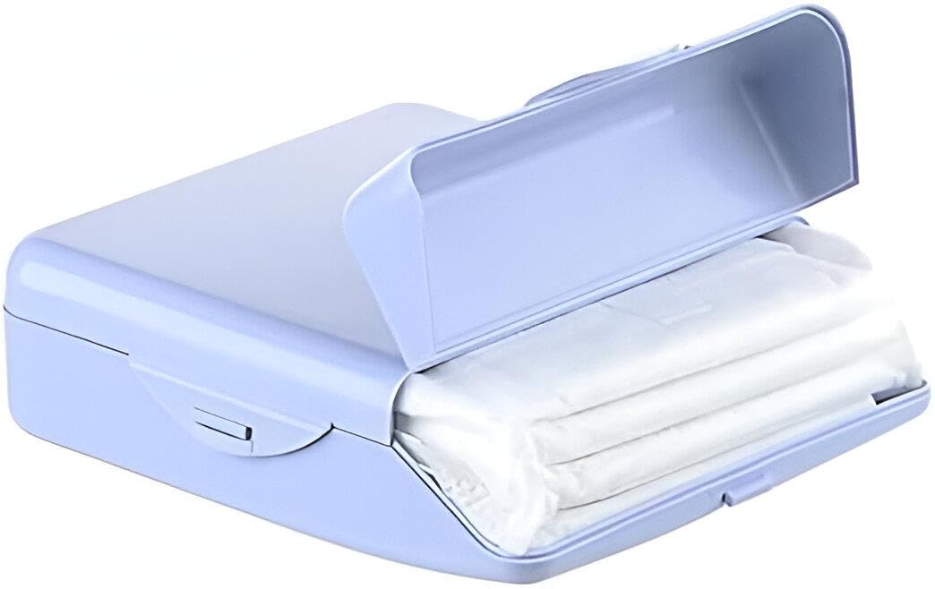 حامل مناديل صحية للنساء - صندوق تخزين بلاستيكي متين ومتعدد الاستخدامات مع آلية فتح مزدوجة، مثالي للاستخدام أثناء التنقل، تصميم خفيف الوزن